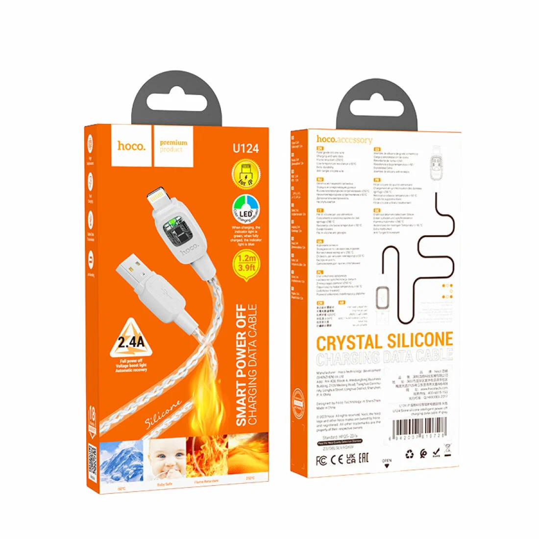 Зарядный кабель для передачи данных, Hoco U136, USB-A to Lightning, 2.4A, 1.2M, white(белый)
