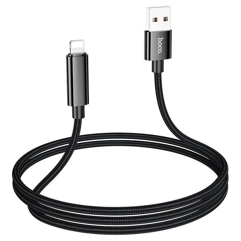 Зарядный кабель для передачи данных, Hoco U121 CRYSTAL, USB-A to Lightning, 2.4A, LED-indicator, black(черный)